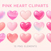 うるつやピンクハート素材 15点セット|ジェル・キャンディ・パール・透明感 PNG