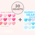 うるつやハート素材 30点セット|ピンク&ブルー/ガラス・ジェル・パール質感 PNG