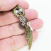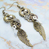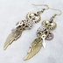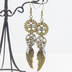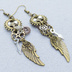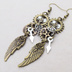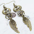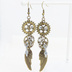 アンティークゴールド 翼と歯車を組合せた多層構造スチームパンクピアス ラインストーン