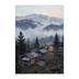 霧に包まれた山岳の村(油絵風ポスター)