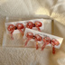 no.251 あかいろリボンピアス レッド ラメ パール クリスマス ribbon ステンレス ピアス