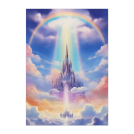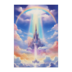 ポスター - B2この商品はpixivFACTORYで作られた商品です。サンプル画像は完成イメージのため、実物と異なる場合があります。 虹色の光に包まれた天空のクリスタル王城を描いた壮麗なファンタジーポスターです。雲海の上に伸びる塔、柔らかなパステルの空、幻想的な光が織りなす世界観が美しい一枚。明るく華やかなインテリアにもぴったりのアート作品です。