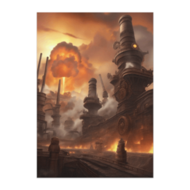 ポスター - B2この商品はpixivFACTORYで作られた商品です。サンプル画像は完成イメージのため、実物と異なる場合があります。 燃え上がるような光に包まれた巨大スチームパンク要塞を描いた迫力ある作品です。金属構造物の重厚感と炎の輝きが生み出すダイナミックな世界観が魅力。ダークファンタジーやスチームパンク好きにおすすめのアートポスターです。
