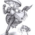 追いかけっこ中のナユタとDoroの色紙イラスト 原画