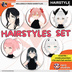 6 VROID HAIRSTYLES SET VTUBER ASSETS ANIME STYLE CYBERPUNK GOTHIC / VRoid用テクスチャ VRoid髪型 三つ編み髪 ポニーテール 女の子 髪型 ヘア オリエンタル ピンクの髪