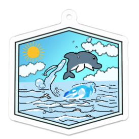 アクリルキーホルダー - 50 x 50 (mm)晴れた日の青い海で、キュートなイルカが元気いっぱいに大ジャンプ!見るたびに心が洗われるような、爽やかで明るいデザインのアクリルキーホルダーです。 【商品のポイント】 ・夏の思い出を切り取ったデザイン: 青い空、輝く太陽、白い雲、そして波間から飛び出すイルカの躍動感が魅力。夏のレジャーや海好きの方におすすめです。 ・クリアなアクリル素材: 水の透明感や空の青さが際立ち、バッグやポーチにつけるとパッと目を引きます。 ・縁取りのある六角形: ユニークな六角形の形状が、バッジのような特別感と可愛らしさを演出します。 ・日常に「癒やし」と「元気」を: 鍵やリュック、ペンケースなど、お好きな場所につけて、毎日の生活にちょっとした癒やしと明るい気持ちをプラスしてください! 【商品仕様】 サイズ:50mm×50mm 素材:アクリル 付属チェーン:ナスカン 印刷:UVインクジェット印刷