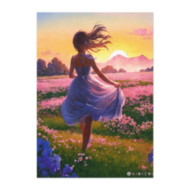 ポスター - B2この商品はpixivFACTORYで作られた商品です。サンプル画像は完成イメージのため、実物と異なる場合があります。 広がるピンクの花畑と夕焼け空の下、風を受けて佇む少女を描いた幻想的な作品です。シルエットが光に縁どられ、柔らかな風景と調和しながら優雅な時間が流れます。落ち着いた色彩とロマンチックな雰囲気を楽しめる水彩油絵風のポスターです。