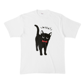 Tシャツ - XL - 白遊んでほしい黒猫くんです♪