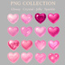 ぷるん透明ピンクハート20点セット|宝石・ジェル・ミルキー・ラメ・オーロラ PNG素材(背景透過)