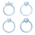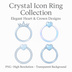 クリスタルブルー ハート&クラウン アイコンリング 4点セット|透明感ジュエリー風 フレーム素材 PNG