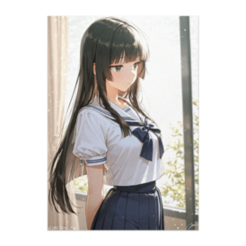 ポスター - B2この商品はpixivFACTORYで作られた商品です。サンプル画像は完成イメージのため、実物と異なる場合があります。 やわらかな光の中、静かに佇むセーラー服の少女。 視線を外した無表情が、言葉にしない感情と透明な空気を感じさせます。 余白と静けさを大切に描いた、通好みの一枚です。