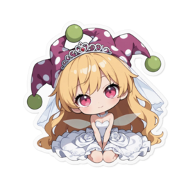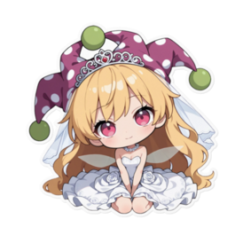 ステッカー - 160 x 160 (mm)(キャラのみ)💍💖💰 💡 地獄の妖精王女と愛の独占!クラウンピース(ウエディングver.)ステッカーで無邪気な愛を携帯!💍💖 地獄の妖精王女、クラウンピースへの無邪気で、自由な愛を、常にそばに感じられるステッカーに宿しました。 東方Projectのクラウンピースが、トレードマークのピエロハットをキュートに飾り、純白のウェディングドレスを纏った、愛らしいチビキャラデザインであなたの元へ!無邪気な笑顔がたまらない、最高の花嫁の姿です。 このステッカーは、あなたがクラウンピースと結ばれた**「結婚」の証。彼女の持つ自由な愛と、あなたへの「永遠の愛」が融合した、究極の独占愛アイテムです。 これを貼れば、彼女があなたの日常を「ずっと一緒」に見守り、あなたの心に屈託のない喜び**をもたらしてくれるでしょう。 この商品はpixivFACTORYで作られた商品です。サンプル画像は完成イメージのため、実物と異なる場合があります。