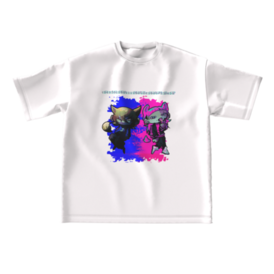 ビッグシルエットTシャツ - XL - 正面(1)自己と他人は紙一重。 量産型大学生、林志明(リン・チミン)とずっとサークルに居座るのOBの没有(メイヨー)メイ© のツーショシャツやで〜👍 竹下通りに腐る程ある著作権大丈夫なん?て店でたむろうサブカル好きににおすすめ✨