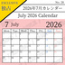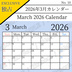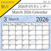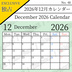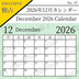 【フリー素材(Free Asset)】2026年カレンダー by キト(2026 Calendar by Kito)- 商用利用可(Commercial Use Allowed)