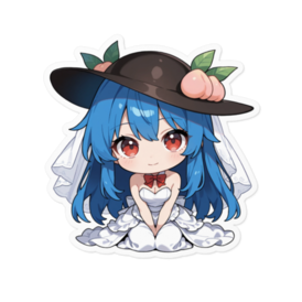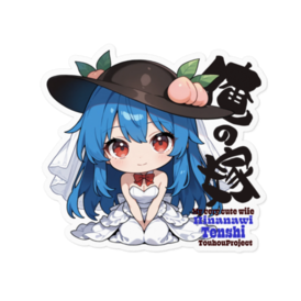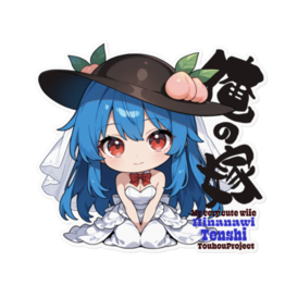 ステッカー - 160 x 160 (mm)(キャラのみ)🍑💍 【祝・天界入籍】退屈な毎日はおしまい!天子と誓う、最高に有頂天な**「結婚生活」**。💍💖 「わたしを嫁にするなんて、いい度胸じゃない!……ふふ、いいわよ。あんたを一生、退屈させないって誓ってあげる!」 東方Projectの天衣無縫な天人、比那名居天子が、眩いばかりのウェディングドレスを纏ってあなたの元へ降臨! 天界のわがまま娘が、あなたという唯一のパートナーのために用意した、最高にキュートなチビキャラ姿のステッカーが登場しました。 これは単なるステッカーではありません。天界と地上を結ぶ、世界にひとつだけの婚姻証明書です。 大きく描かれた「俺の嫁」の文字が、あなたの誇りと、彼女への揺るぎない愛を力強く宣言します。 この商品はpixivFACTORYで作られた商品です。サンプル画像は完成イメージのため、実物と異なる場合があります。
