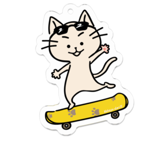 • 白ネコのアクリルキーホルダー(スケートボード)A - 50 x 50 (mm)