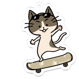 • ハチワレネコのアクリルキーホルダー(スケートボード)C - 50 x 50 (mm)(2)