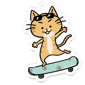 • 茶トラネコのアクリルキーホルダー(スケートボード)B - 50 x 50 (mm)(1)