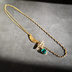 ファルカをイメージした、前留め式のネックレスです。 お好みで留め具の部分をサイドに回してもお使い頂けるデザインです。(画像2枚目) 少し青みのあるグリーンのストーンはドイツ製のヴィンテージガラス、騎士団のエンブレムからイメージした翼のチャームを使用しています。 3種のチェーン、翼チャームは変色のしにくいk16gpのものを使用しました。 撮影状況やお使いの端末の設定等により、画像と実物の色合い等に違いが出る場合があります。 ご不明な点はお気軽にお問い合わせください。 チェーンの長さ:約50cm ガラスペンダントトップの大きさ:約1.4cm 金具の色:ゴールド *ご注意* *素人によるハンドメイド作品です。 *ハンドメイド作品ですので、同じ品を複数ご購入頂いた場合でも少しずつ個体差がある場合があります。 *金属を使用しております。金属アレルギーの方のご着用はご注意ください。 *一つ一つ丁寧に作成しておりますが、既製品と比べて強度や完成度が劣る場合がございます。ご了承の上お取り扱いにはご注意ください。 *水濡れや直射日光の当たる場所に放置しますと劣化が早まる恐れがありますのでご注意ください。