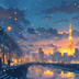 夜空にそびえ立つ光の塔と、宝石を散りばめたような都会の夜景を、柔らかなタッチで描いた幻想的なイラストです。 黄金色に輝くタワーの灯りが水面に溶け込み、宙を舞う光の粒子が、見慣れた都会の景色を魔法のような物語の世界へと変えています。深い紺色の夜空と、温かみのあるオレンジ色のコントラストが、見る人の心に希望と安らぎを届けてくれる一枚です。 SNSのヘッダーや投稿、冬のイベントの告知、Lo-fi(ローファイ)ミュージックの背景動画、お部屋を彩るデジタルアートなど、ドラマチックで情緒あふれる雰囲気を出したいシーンに最適です。 サイズ:3000x3000px 形式:PNG(高解像度) 用途:個人商用利用 ※本作品はAIツールを使用し、色味や構図を調整しながら制作したイラストです。