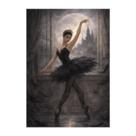 ポスター - B2この商品はpixivFACTORYで作られた商品です。サンプル画像は完成イメージのため、実物と異なる場合があります。 開かれた窓の向こう、満月を背に踊る黒鳥。 室内と夜空が溶け合うその瞬間は、 現実と幻想の境界を曖昧にします。 静けさの中に秘めた強さと、 孤高の美を描いたバレエアート作品です。
