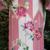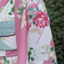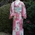 草花を丸く配置した丸紋は、江戸時代末期の武家の打ち掛けや小袖をはじめとした昔のきものによく見られるデザイン。非常に格式が高く、日本人の美意識の中で発展したデザインの一つです。時代が下り、日常着よりの戦前のきものに取り入れられることはあっても、主に桜、菖蒲、菊、萩といった日本古来の夏秋の草花を配する作例がほとんどです。 大正時代に輸入された薔薇の花は、訪問着や振袖といった礼装にも徐々に取り入れられるほど日本のきものに浸透しました。ただ、おそらく上記のような背景があり、丸紋という日本的な美意識のフォルムに落とし込まれるのには抵抗があったのかも知れません。 そのうちに戦争が始まり、洋花である薔薇は徐々に着物の柄としての地位を失ってしまいました。 そこで今回は、もし戦争で薔薇の柄の発展が断絶されなかったら?という構想をもとに、薔薇で丸紋をデザインしました。枝や蕾まで丁寧に写実的なデザインは、大正時代の礼装よりのきものが好んだような絵画のようなタッチにしました。 背景には絣を入れた矢羽紋様。大正時代には丸紋と一緒に描かれてきたことが多い模様です。大胆な矢羽柄はマイサイズでお仕立てをすると柄配置的に非常にバランスが良く、着姿が映えます。ぜひマイサイズで着れるこの機会にお召しになって下さいね。