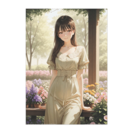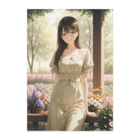 ポスター - B2この商品はpixivFACTORYで作られた商品です。サンプル画像は完成イメージのため、実物と異なる場合があります。 花壇に囲まれたテラスで静かに佇む、ワンピース姿の少女を描いたイラストです。 落ち着いた表情とやわらかな色合いが、穏やかな午後の空気を感じさせます。 インテリアにもなじみやすい、上品で静かな一枚です。