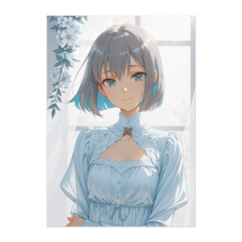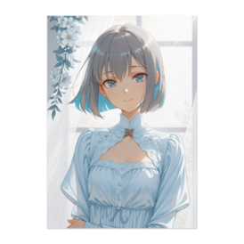 ポスター - B2この商品はpixivFACTORYで作られた商品です。サンプル画像は完成イメージのため、実物と異なる場合があります。 淡いブルーカラーのブラウスと、すっきりとしたボブヘアが印象的なイラストです。 柔らかな自然光と花のモチーフが、清潔感と透明感のある雰囲気を引き立てます。 爽やかで落ち着いた空気を感じられる一枚です。