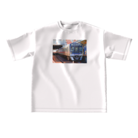 ビッグシルエットTシャツ - XL - 正面鉄道写真家が撮影した作品をTシャツにデザインしました。京成電鉄の新型車両3200形車両です。是非お買い求めください。
