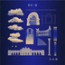ギリシャ風建物と雲の組み合わせが可愛いココフォリアお部屋素材です。