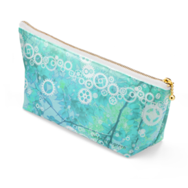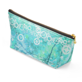 新緑の葉の写真と歯車を組み合わせたデザイン。 色違いで「歯車とラピスラズリのポーチ」があります。 ファスナーは白と黒があります。 この商品はpixivFACTORYで作られた商品です。サンプル画像は完成イメージのため、実物と異なる場合があります。