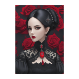 ポスター - B2この商品はpixivFACTORYで作られた商品です。サンプル画像は完成イメージのため、実物と異なる場合があります。 深紅の薔薇を背景に、ゴシック調の装いを纏った成人女性を描いたポスターです。 黒と赤のコントラストが印象的で、静かな強さと気品を感じさせます。 重厚感のある雰囲気で、空間のアクセントとしても映える作品です。