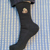 たぬ座りのワンポイント靴下です。 つがいでやってきます。 サイズ:約23cm〜25cmサイズに対応 お一人様2つまで購入可能です。 組成 : 綿、アクリル、ポリエステル、ナイロン、ポリウレタン 素材混率:コットン60%、アクリル20%、ポリエステル15%、ナイロン5% ※足底パイル仕様 ボディカラー : ブラック サイズ : 22 - 25cm/26 - 29cm 丈長 :約130mm ※5~10mmブレあり 横幅 : 約70~80mm ※お洗濯により多少の縮みが発生します。