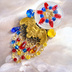 貴和クリスタルや真鍮パーツ、チェコガラスボタンなどのブローチです。 ⚠️尖った部分がありますので、お取り扱いにはご注意ください。 ⚠️人の多い場所へブローチを着けてお出かけの際は、周囲へのご配慮とともに、引っ掛かりなどに十分お気をつけください。 【ピンの付け方】 ① シリコンキャッチをいったん針から外します。 ② ピンの針をお洋服などに刺します。 ③ もう一度、針にシリコンキャッチを付けます。 ④ 最後に針をストッパーにしっかり取り付けます。 こうしておくと、万が一ストッパーが外れてもシリコンキャッチが残るので、落下を防ぐことができます。 【サイズ】 幅:約7センチ 【真鍮パーツについて】 真鍮は時間とともに少しずつ色が深まり、アンティークのような風合いに変化していきます。 これは素材の特徴であり、経年ならではの味わいとしてお楽しみいただければ嬉しいです。