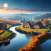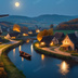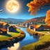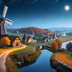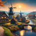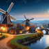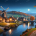 中世ファンタジー|秋に染まる風車の農村(黄色い月夜)|10枚セット