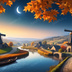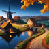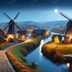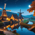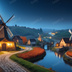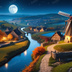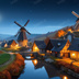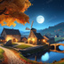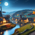 中世ファンタジー|秋に染まる風車の農村(白い月夜)|10枚セット