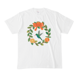 - Tシャツ - M - 白 (ハチドリとオレンジ)(M - 正面 - 白)2026-03-27