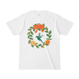 - Tシャツ - L - 白 (ハチドリとオレンジ)(L - 正面 - 白)2026-03-27