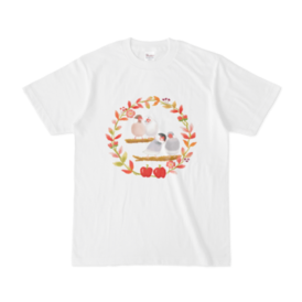 - Tシャツ - L - 白 (文鳥とリンゴ)(L - 正面 - 白)2026-03-27