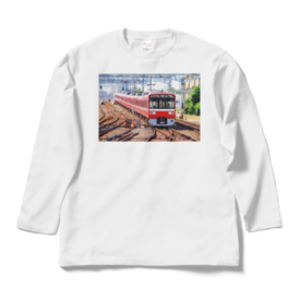 ロングスリーブTシャツ - XL - ホワイト鉄道写真家のオリジナル画像です。京浜急行電鉄の1500形1700番台です。都営線や京成線、北総鉄道、スカイアクセス線に乗り入れます。素敵な車両です。是非お買い求めください