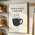This digital wall art is ideal for cat lovers, coffee enthusiasts, and minimalist home decor fans. Suitable for personal use, digital display, or printing as wall art. This artwork is part of the Kitchen Cat Series, designed to be collected and displayed together for a cohesive look.