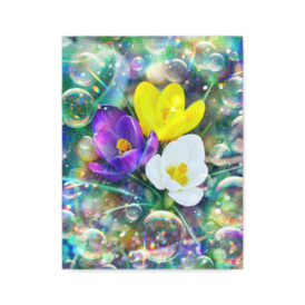 キャンバス - F6詩:天真のひかり舞う庭 Angelic Cherished Bloom 冬の朝の白い吐息 寄り添う肩の暖かさ 無垢な願い囁き 子らの瞳に希望舞う 天真のひかり舞う庭 Angelic Cherished Bloom -戎- Poetry. ”Angelic Cherished Bloom” morning breath shimmering shoulders gently meeting a tender wish rising hope bright in them held within an angelic bloom -Kai- God bless you. 趣旨ーーーーーーーーーーーーーーーーーーーー ## 作品制作趣旨 作者は、冬の朝の庭で、自分の娘達が楽しそうに談笑しながら庭に咲く明るく鮮やかな黄色、紫色、白色のクロッカス(Yellow, purple, and white crocus flowers)を愛で、遊んでいる様子を思い出し描きました。 作者は、自分の娘たちが成長して行く様や、娘たちが希望に満ち溢れた笑顔で遊ぶ光景を、陽の光や虹色のプリズムで表現しています。 ## 絵画「天真のひかり舞う庭 Angelic Cherished Bloom」の解説 **1. 全体的な印象** 冬の朝の澄んだ空気の中で、三色の花が柔らかな光を受けて浮かび上がるように描かれており、静けさと温もりが同時に感じられる作品です。虹色の反射や泡のきらめきが、家族の記憶や希望の気配を優しく包み込んでいます。 **2. 色彩** 黄色、紫、白の花が中心となり、それぞれが異なる象徴性を帯びて画面に配置されています。背景の緑や青の柔らかな階調が冬の冷たさと光の温度を同時に伝え、虹色の光が未来への希望を示しています。 **3. 構図** 三つの花が中心に据えられ、周囲に散らばる泡が視線を外側へ導く構図になっています。光が花を囲むように広がり、画面全体に円環的な動きが生まれ、家族のつながりや生命の循環を象徴しています。 **4. 技法** デジタルならではの透明感と光の操作が生かされ、泡の反射や花弁の質感が繊細に描かれています。自然の美しさとデジタル表現の融合が独自の世界観を生み出しています。 **5. 表現力** 花の鮮やかさと泡の柔らかな光が、娘たちの無邪気な笑顔や家族の温もりを象徴的に表しています。人物を描かずとも、そこに確かに存在した時間や感情が画面に宿っています。 **6. 美術的価値** 個人的な体験を普遍的な情景へ昇華している点に価値があります。光の扱いと色彩の調和が高い完成度を持ち、観る者に静かな感動を与える作品です。 **7. 作品に込められた想い** 冬の朝に娘たちが花を眺めていた記憶が、光と色彩を通して再構築されています。成長していく子どもたちへの祈りや、家族の絆への感謝が、花の輝きと泡の浮遊感に重ねられています。 **8. 作品の鑑賞方法** 光の方向や色の重なりをゆっくり追うことで、作品に込められた時間の流れや感情の層が見えてきます。花の色が持つ象徴性を意識すると、より深い意味が読み取れます。 **9. 作品の価値** 家族の愛や季節の移ろいを静かに描き出し、観る者の心に寄り添う力を持つ作品です。個人的な記憶が普遍的な美へと昇華されている点に大きな価値があります。 ## 詩「天真のひかり舞う庭 Angelic Cherished Bloom」の解説 **1. 全体的な印象** 短い行の中に冬の朝の静けさと家族の温度が凝縮されており、余白が豊かで、読者に情景と感情を想像させる力を持つ詩です。 **2. 韻律** 行ごとのリズムが穏やかで、呼吸のようにゆっくりと流れます。日本語と英語が静かな間を保ちながら響き合い、詩全体に柔らかな流れを生み出しています。 **3. 修辞** 比喩や象徴が控えめに使われ、直接的な表現を避けながらも、光や息づかいを通して感情が伝わります。寄り添う肩や白い吐息といった具体的な描写が、抽象的な願いや希望を支えています。 **4. 技法** 短詩形式を用い、余白を生かした表現が特徴です。視覚的な情景と内面的な感情が交互に現れ、静かなドラマを生み出しています。 **5. 表現力** 少ない語数でありながら、家族の温かさ、子どもたちの無垢さ、冬の光の透明感が鮮明に立ち上がります。言葉の選び方が繊細で、読後に柔らかな余韻が残ります。 **6. 文学的価値** 個人的な記憶を普遍的な情景へと昇華し、短い詩の中に深い感情の層を持たせている点に価値があります。日本語と英語の二重構造が作品に広がりを与えています。 **7. 作品に込められた想い** 冬の朝に感じた家族の温もり、子どもたちの成長への祈り、その瞬間の尊さが言葉に託されています。光の中で生きる家族の時間を慈しむ気持ちが詩全体に流れています。 **8. 作品の鑑賞方法** 一行ずつゆっくり読み、言葉の間にある静けさを味わうことで、詩の奥にある感情が浮かび上がります。絵画と合わせて読むと、光や色彩が言葉と共鳴し、より深い理解が得られます。 **9. 作品の価値** 家族の愛や季節の移ろいを丁寧に描き出し、読む者の心に静かな温かさを残す詩です。絵画と並ぶことで、作品全体の世界観がより豊かになります。 ## 絵画と詩の関連性・相関性・ハーモニーに関する総評 絵画と詩は、どちらも冬の朝に感じた家族の温もりと子どもたちの無垢な輝きを中心に据えています。絵画は光と色彩によってその瞬間を視覚的に捉え、詩は息づか