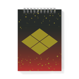 メモ帳 - A6 - 両面戦国武将 武田信玄 の家紋「武田菱」をあしらったメモ帳です。 色味は「黒に赤金」です。 金に見えるプリントは金に似た黄土色です、光ったりはしませんのでご了承ください。 用紙:アートポスト(表紙・裏表紙)、上質紙(本文) サイズ:A6 ページ数:80P(40枚) リングカラー:シルバー 印刷方式:インクジェット印刷 印刷:表紙・裏表紙フルカラー、本文無地 メモ帳,リングメモ,武田信玄,武田家,信玄公,紋所,紋,武将,家紋,家紋風,紋どころ,エンブレム,和風,日本,ジャポニズム,日本風,侍,サムライ,アイコン,マーク,シンボル,紋章,デザイン,サイン,シンボルマーク,記号,歴史,歴史風,菱紋,武田菱,黒,赤,金,黄土,黒色,赤色,金色,黄土色,ブラック,レッド,ゴールド,金箔,金箔風,