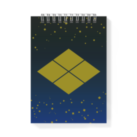 メモ帳 - A6 - 両面戦国武将 武田信玄 の家紋「武田菱」をあしらったメモ帳です。 色味は「黒に青金」です。 金に見えるプリントは金に似た黄土色です、光ったりはしませんのでご了承ください。 用紙:アートポスト(表紙・裏表紙)、上質紙(本文) サイズ:A6 ページ数:80P(40枚) リングカラー:シルバー 印刷方式:インクジェット印刷 印刷:表紙・裏表紙フルカラー、本文無地 メモ帳,リングメモ,武田信玄,武田家,信玄公,紋所,紋,武将,家紋,家紋風,紋どころ,エンブレム,和風,日本,ジャポニズム,日本風,侍,サムライ,アイコン,マーク,シンボル,紋章,デザイン,サイン,シンボルマーク,記号,歴史,歴史風,菱紋,武田菱,黒,青,金,黄土,黒色,青色,金色,黄土色,ブラック,ブルー,ゴールド,金箔,金箔風,