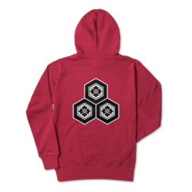 直江兼続 家紋 三つ盛亀甲に花菱 スウェット ワインレッドに黒