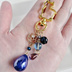 幻想的で目を引く綺麗な大きめサイズのパールチャームにジルコニアが輝く煌めくお星様と三日月モチーフのコネクターを合わせて華やかに仕上げ、更にぷっくり可愛いしずくビーズを合わせた涼しげなラブラドライト色のルナフラッシュとアクセントにメタリックブルー色の小さめサイズのガラスビーズを、サファイアとダークグリーン色が混ざり合ったファイアポリッシュチェコビーズなどをそれぞれ可愛らしい猫ちゃんシルエットのナスカンに合わせて豪華に仕上げたお洒落なキーホルダーとなっております☺ メインのお色は凛としたカッコいいブルー色、ゴールド金具と合わせて涼しげで幻想的な色合いでまとめました☺ キーホルダーとしてはもちろん、ファスナーチャームやバックのサイズによってはバックチャームとしてもご利用頂けます。 ※こんな方におすすめ♪ *大切な方へのプレゼントに *濃いブルー色がお好きな方に *ちょっと豪華なキーホルダーがお好きな方に *華麗でお洒落なデザインの作品がお好きな方に ☆夢幻の雫 パールチャーム ブルーオーロラ 約21x13mm ☆ルナフラッシュ ラブラドライト 8mm玉 ☆ファイアポリッシュチェコビーズ 不透明ブルー クリアモスグリーン 8mm ☆ガラスビーズ メタリックブルー ボタンカット 4mm ☆ガラスビーズ バイオレットオーロラ ボタンカット 4mm ☆しずく型チェコビーズ アメジストラスター 9x6mm ☆きらめき星と三日月ジルコニアチャーム ゴールド 約19x13mm ☆座金 ゴールド ☆スペンサー ゴールド ☆メタルビーズ ゴールド ☆9ピン ☆Tピン ☆丸カン ☆猫のシルエット型ナスカン ゴールド 長さは約8.5cmとなっております。(約3.5cm程のナスカンを含む)