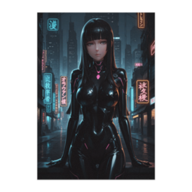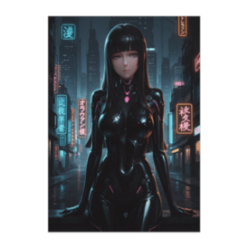 ポスター - B2この商品はpixivFACTORYで作られた商品です。サンプル画像は完成イメージのため、実物と異なる場合があります。 ネオン都市背景のサイバーパンク風アニメ美女ポスター。 未来感のあるスーツ表現と柔らかな光演出が特徴の 落ち着いたSFアニメイラスト風作品です。