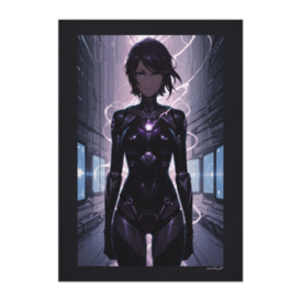 ポスター - B2この商品はpixivFACTORYで作られた商品です。サンプル画像は完成イメージのため、実物と異なる場合があります。 マットブラックのボディにパープルの発光パーツを組み合わせた 近未来サイボーグ女性のポスター作品。 スタイリッシュでSF感のあるインテリアアートとして楽しめます。
