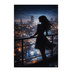 都市の灯りを見つめるシルエットポスター