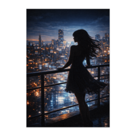 ポスター - B2この商品はpixivFACTORYで作られた商品です。サンプル画像は完成イメージのため、実物と異なる場合があります。 輝く都市の夜景を背景に、静かに佇む女性のシルエットを描いた縦長ポスター作品。都会の光と深い夜のコントラストが印象的で、落ち着いた雰囲気のインテリアアートとして楽しめます。